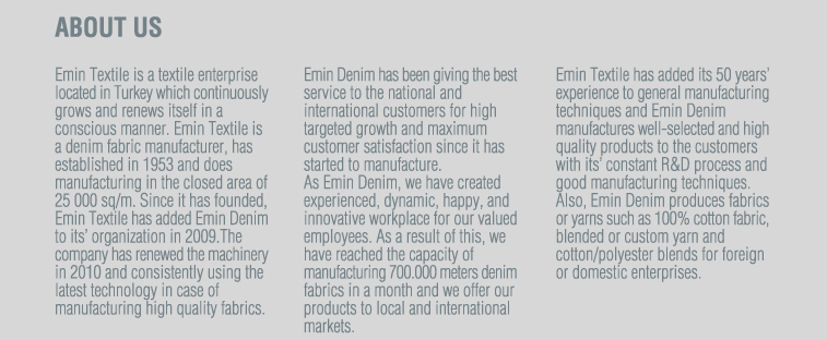 HOMEPAGE     I     ABOUT US    I     GALLERY    I     DENIMTURK     I    RECYCLE   I     CONTACT